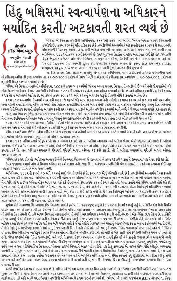 “Law Guru” Column is a very much popular column amongst people which publishes daily in Sandesh Newspaper since the year 2011. Readers found this column very useful and they keep cuttings of published column with them safely and raise their questions or ask for detailed judgments. Since the language of this law guru is very simple to understand, readers get the knowledge of legal terms and law easily. “Law Guru” column is 5-6 liner statements, kind of “bullet statements” that target the large audience who can understand law effortlessly.